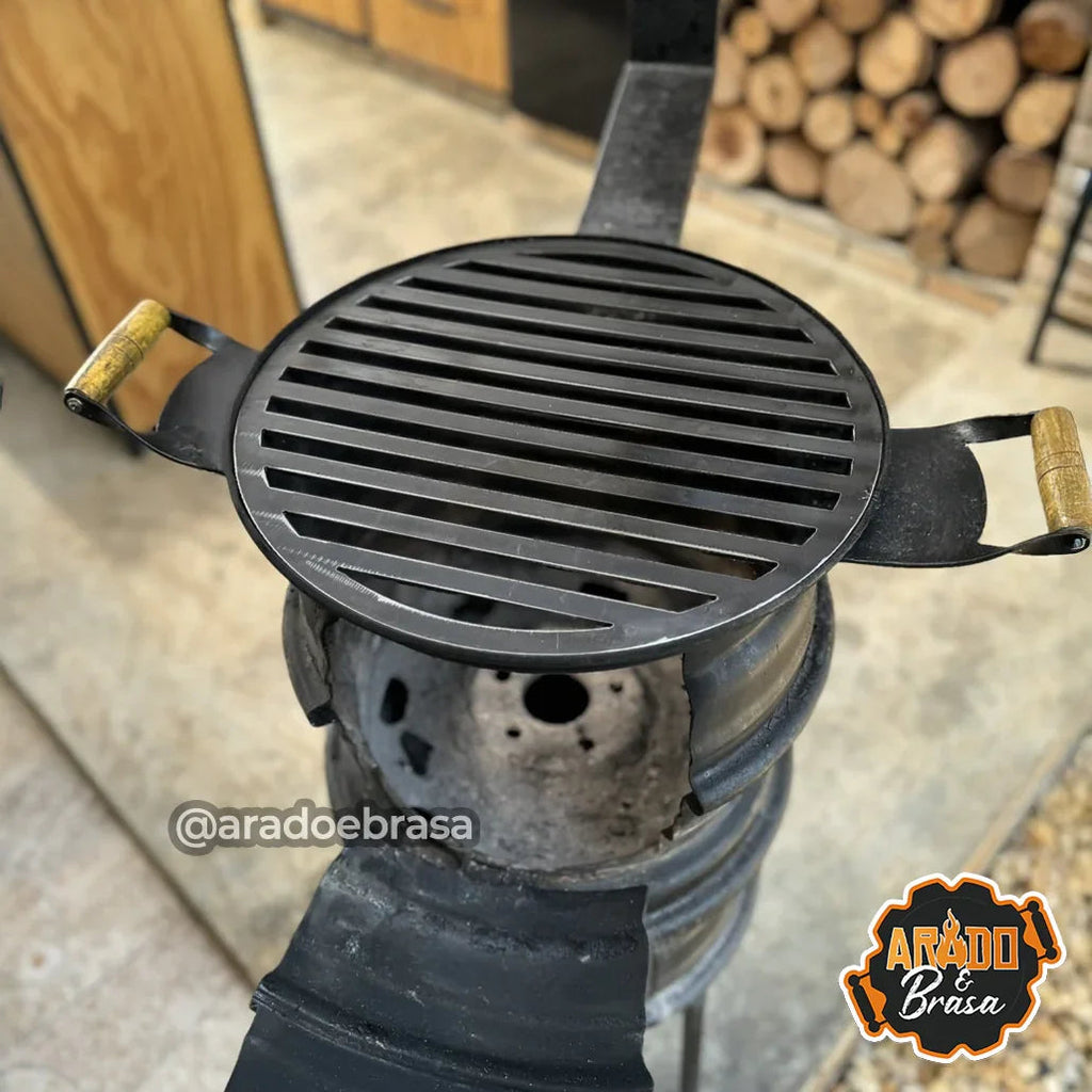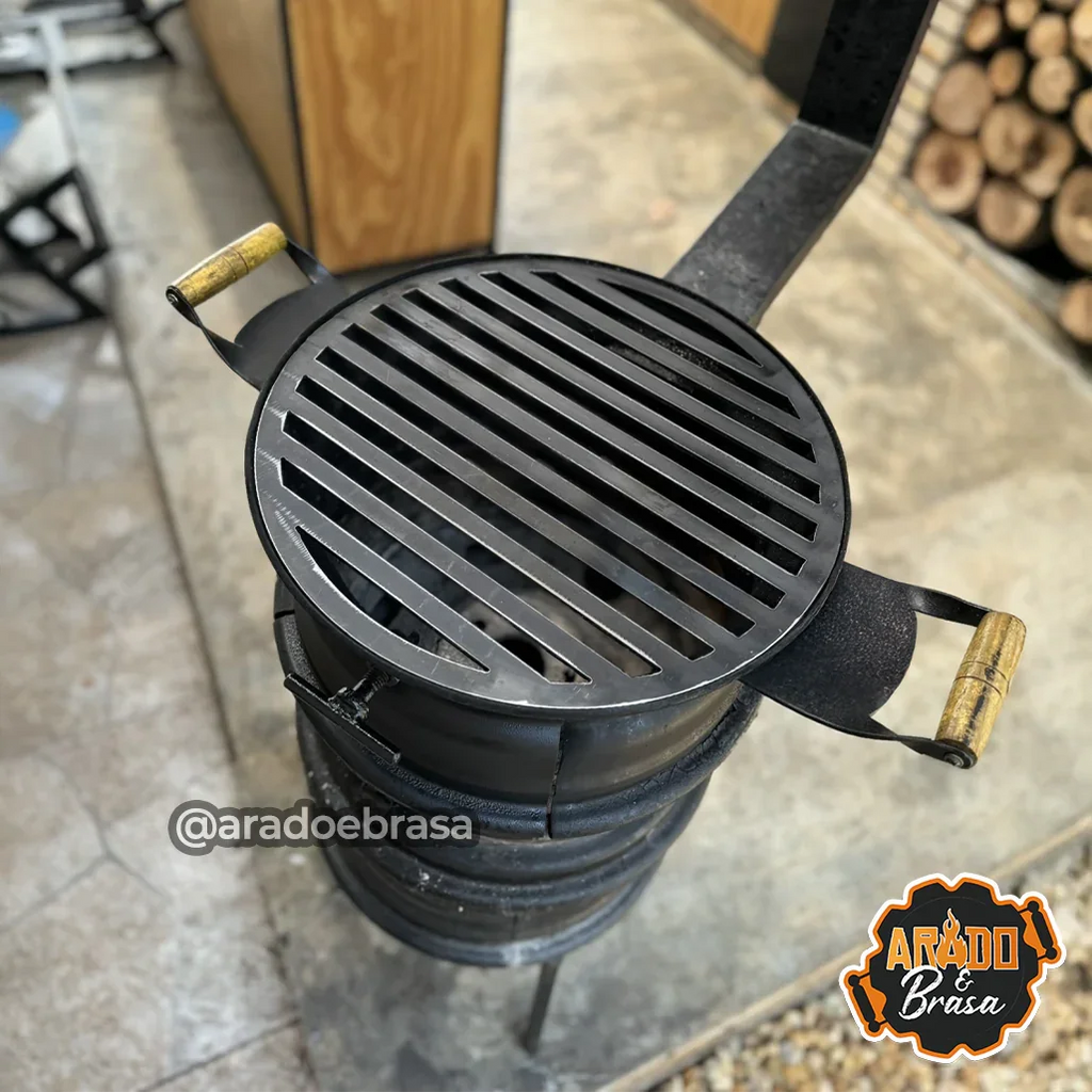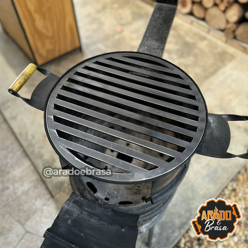 • Grelha com diâmetro de 50cm que se encaixa perfeitamente no fogareiro, feita em aço carbono com chapa preta. facilmente removivel.