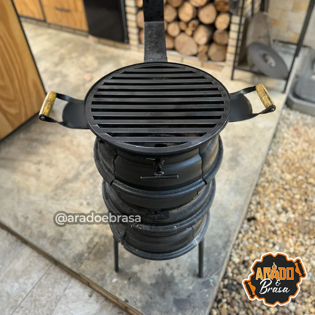 • Fogareiro robusto: Construído com 3 rodas de ferro, possui aberturas para lenha e cinzas, garantindo que as cinzas não caiam no chão.