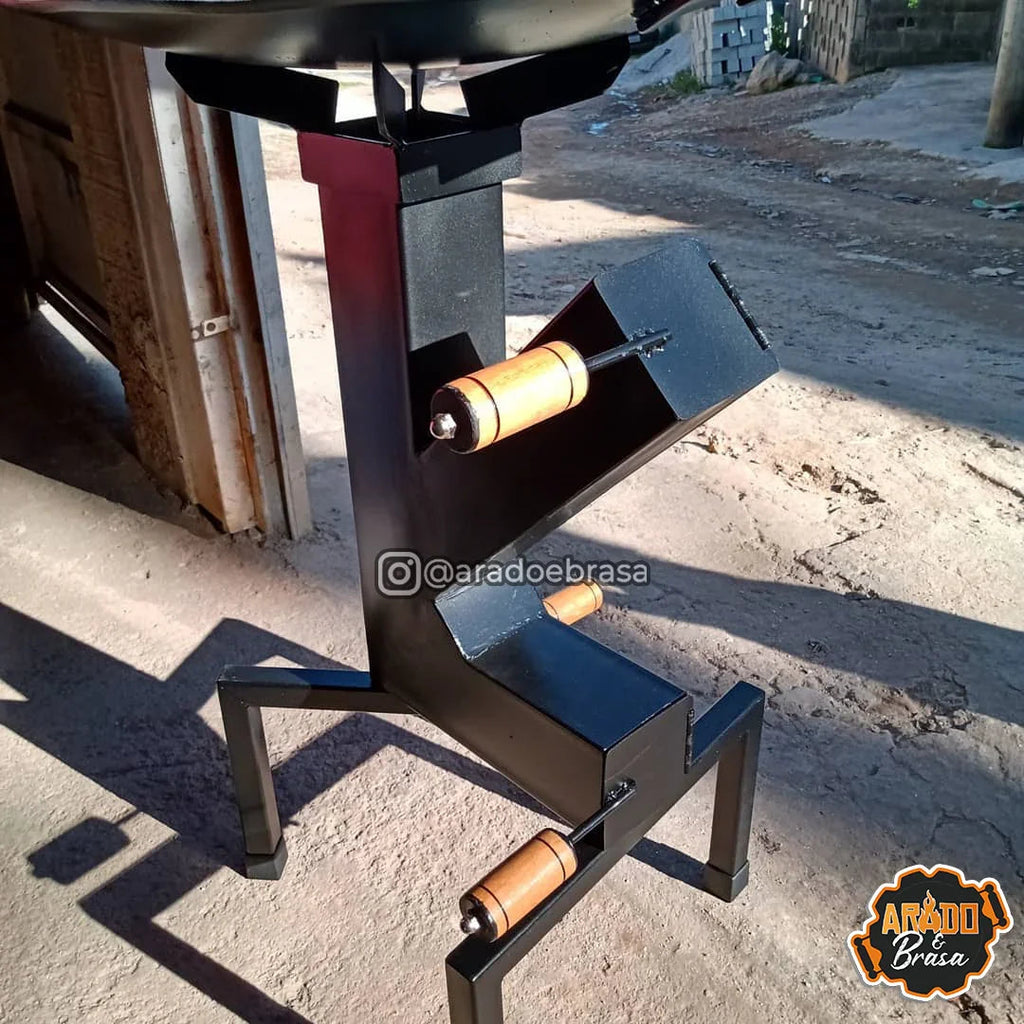 Suporte a Lenha: O suporte foi projetado para oferecer estabilidade e praticidade, permitindo que você cozinhe de forma rústica, preservando o sabor autêntico dos pratos feitos no fogo.